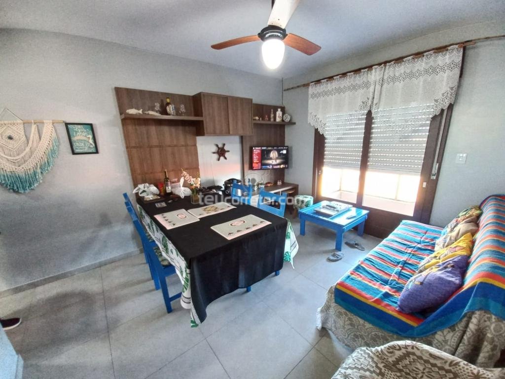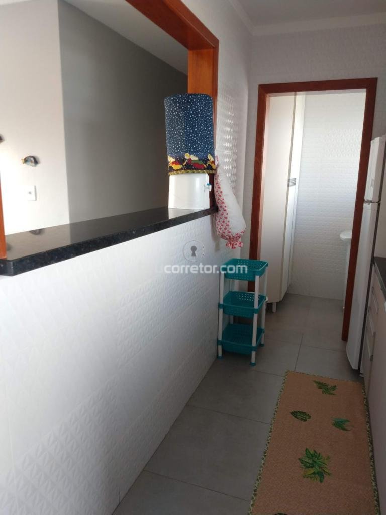 Apartamento mobiliado a poucos metros do mar composto de: cozinha integrada a sala de estar com sacada e vista para o mar, 2 dormitório, um possui sacada com vista para o mar, 1 banheiro social, portão eletrônico que da acesso a vaga de garagem, salão de festa de uso comum.