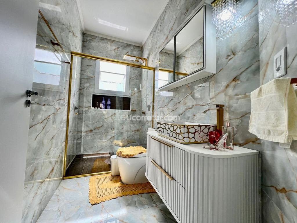 Exelente casa térrea moderna, com ótimo padrão contrutivo, toda mobiliada e decorada, composta por três amplos dormitórios sendo uma suíte, sala e cozinha conjugadas, amplo pátio frente e fundos, vaga para três veiculos.